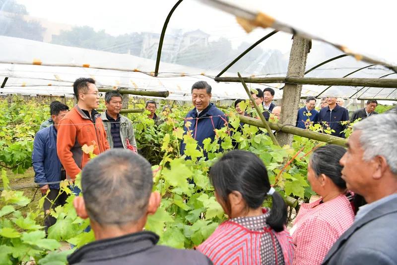 4月25日**27日,中共中央总书记、国家主席、中央军委主席习近平在广西考察。这是25日上午,习近平在桂林市全州县才湾镇毛竹山村,走进葡萄种植园,同农技人员和村民亲切交流。新华社记者 谢环驰 摄